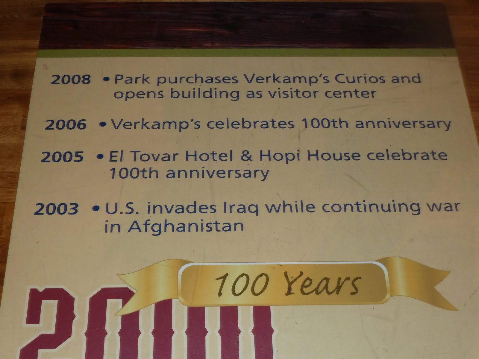 Verkamp's floor actually has a nice time line showing major points in the history and development of the canyon as a park and tourist site. I learned quite a bit myself including the fact that our hotel was over a 100 years old.