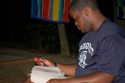 During the day, we mostly chilled—went for a leisurely hike through the woods, took a dip in the man-made beach, talked, and read (Mazi got wrapped up in the latest Dan Brown novel, "Angels and Demons," while Nick and I shared Nathan McCall’s incredible novel, “Them.” We got our New York Times fix on our Blackberries (reception was crystal clear).